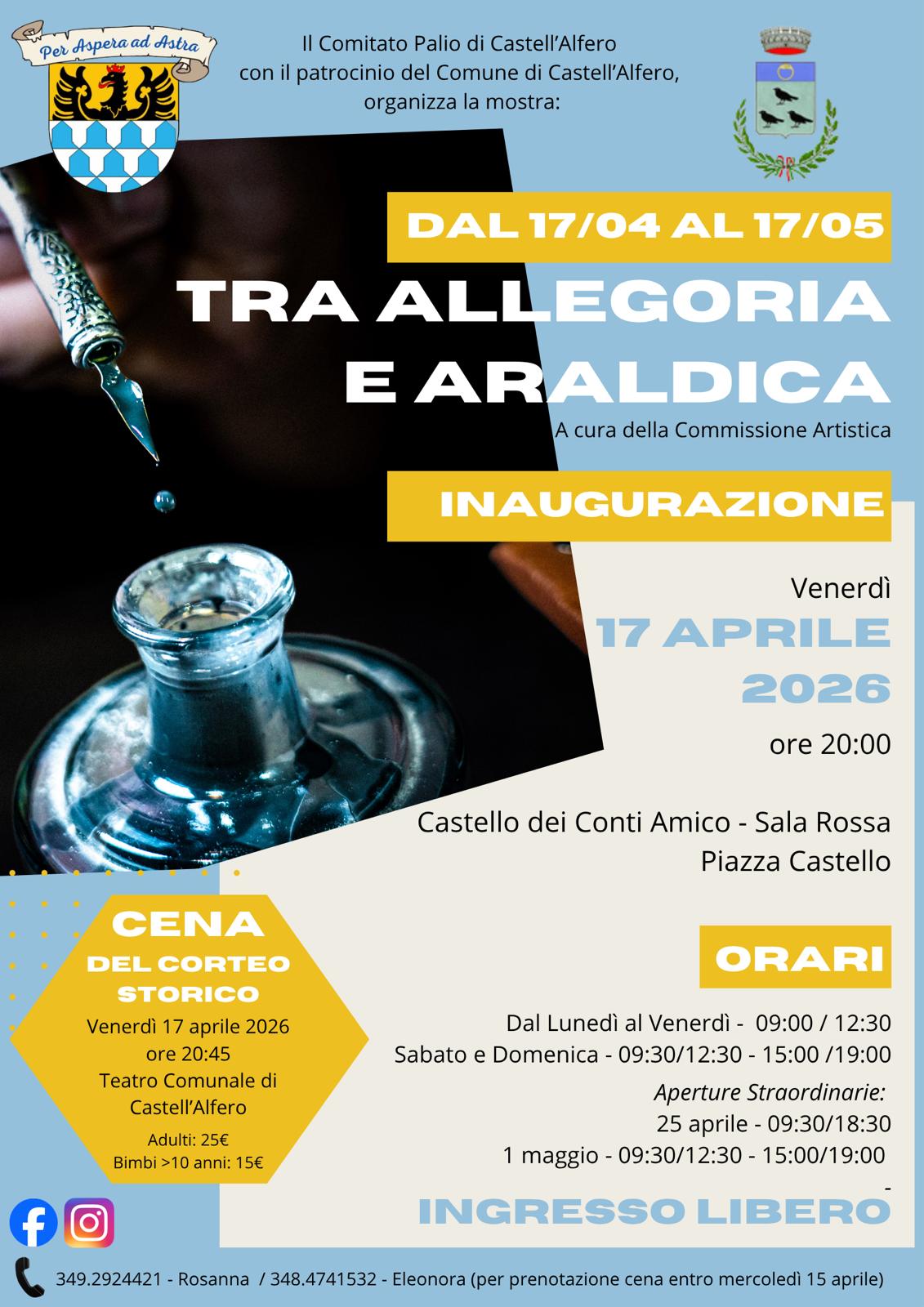 Il Comitato Palio di Castell'Alfero organizza l'evento "Tra Allegoria e Araldica"; inaugurazione Venerdì 17 Aprile alle ore 20:00