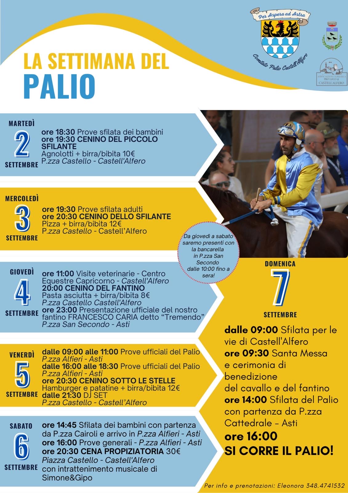 Programma dettagliato e super ricco del Comitato Palio di Castell'Alfero nella prima settimana di settembre