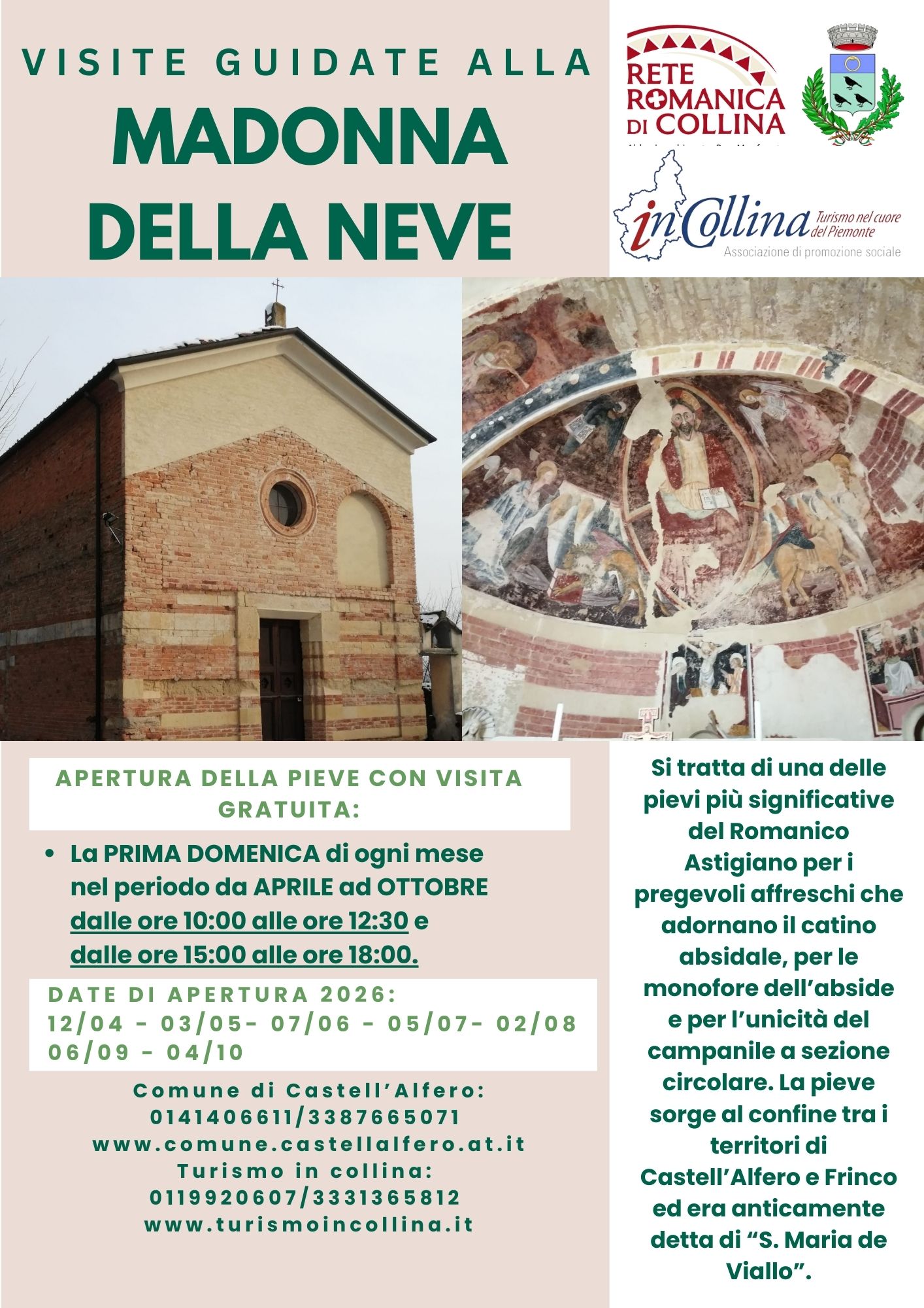 Apertura della pieve Madonna della Neve ogni prima domenica del mese da aprile 2026 fino ad ottobre 2026.