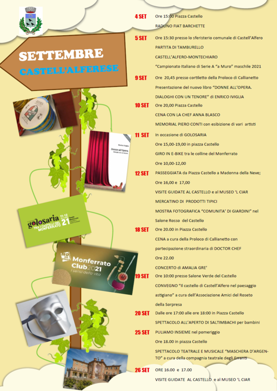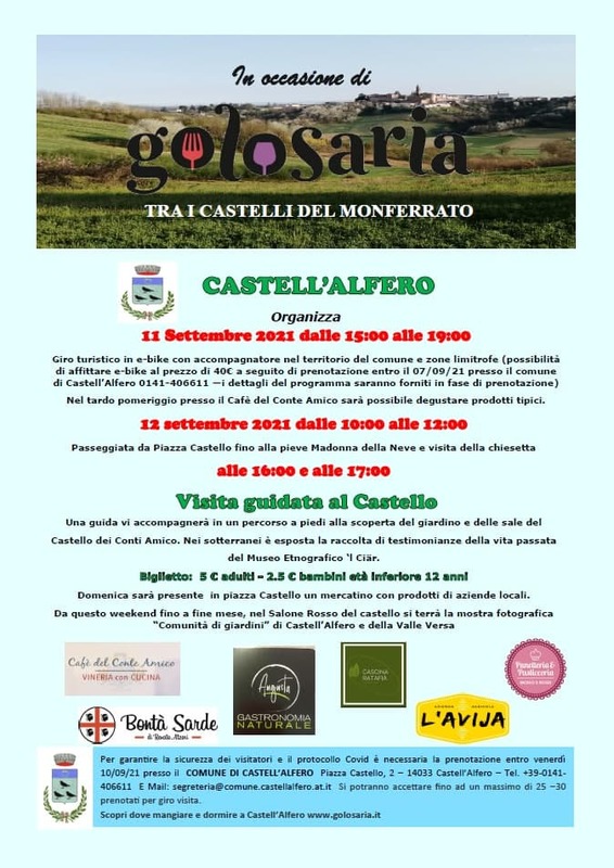 Domenica 12 settembre, dalle ore 10:00 alle 12:00, a Castell'Alfero, è in programma una passeggiata da piazza Castello fino alla pieve Madonna della Neve e visita della chiesetta.